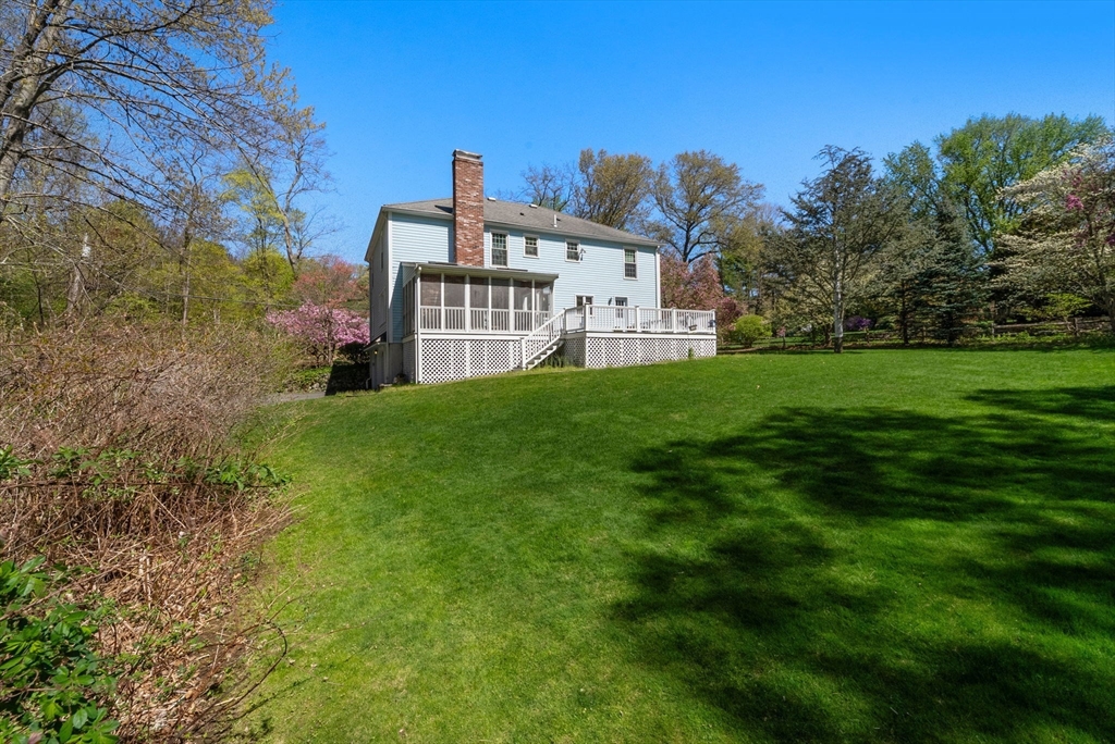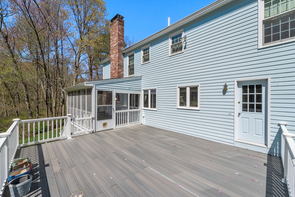 Welcome to 16 Parmenter Rd - an inviting center-entrance Colonial nestled on a lush 1-acre lot with mature landscaping & fruit trees. The thoughtfully designed interior boasts 2760 sqft of living space with 4 beds & 2.5 baths. Upon entering, you're greeted by a formal living room & dining room, ideal for entertaining. The family room opens to a welcoming kitchen w/ ample cabinetry, chef's island, & direct access to a sunroom & deck, providing a seamless transition to the tranquil & level backyard. The main floor includes a convenient half bath & laundry room. The second level features a large primary bedroom w/ ensuite bath & 3 additional bedrooms with a full bath. The unfinished basement provides ample storage & access to the 2-car attached garage, equipped w/ increased amperage outlet for your EV charger. Potential to finish the basement for additional living space. This property caters to every lifestyle, don't miss the chance to make this your forever home.