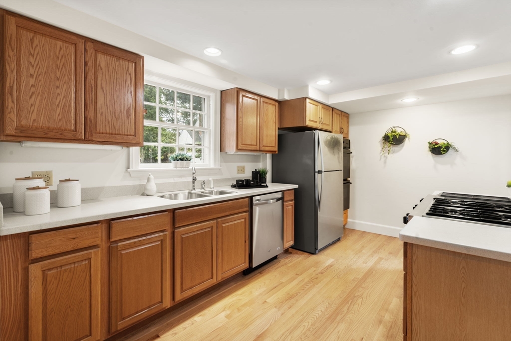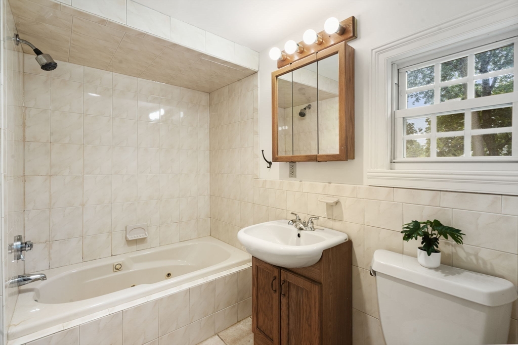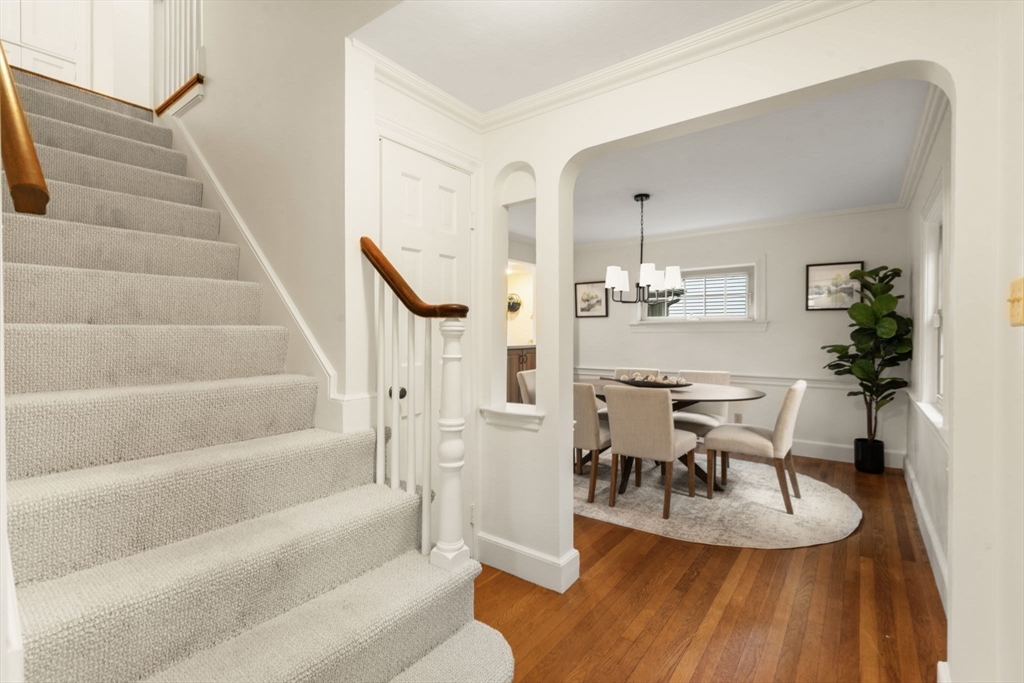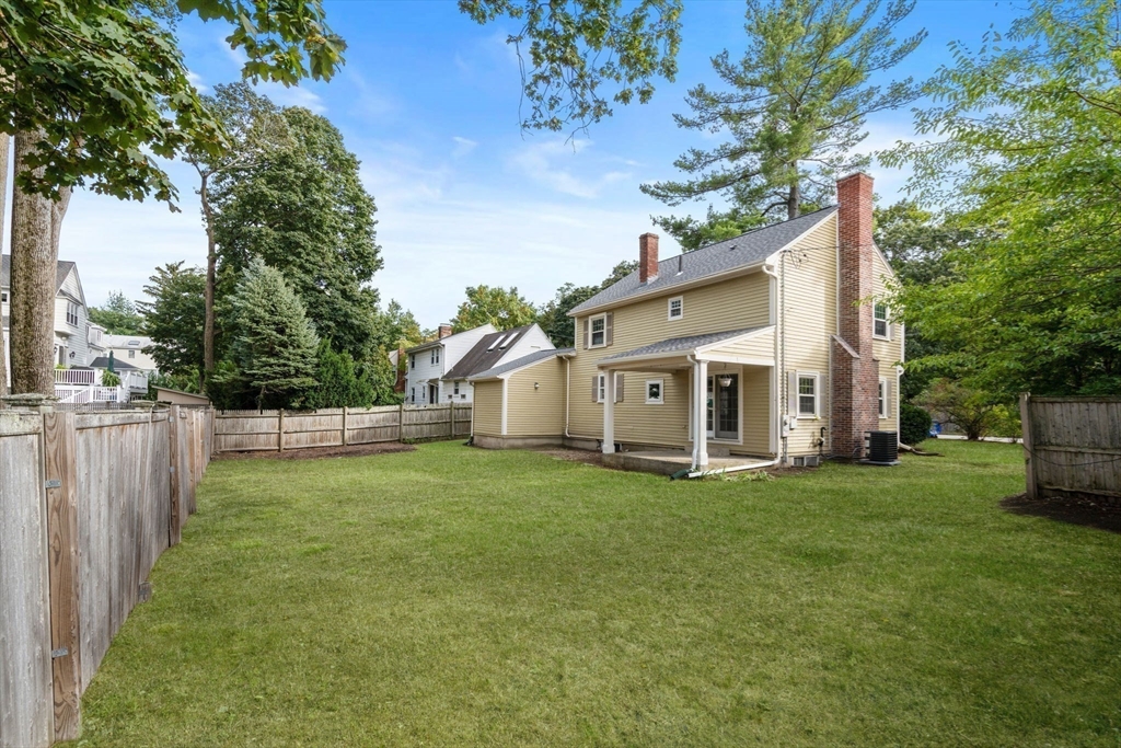 Welcome to 163 Day Street in Auburndale--a delightful Colonial featuring 3 beds, 1.5 baths, Central AC, garage, new roof & HVAC. Upon entering, you're greeted by a bright, freshly painted interior that leads to the living room with hardwood floors & wood burning fireplace. French doors open to a covered patio and partially fenced, level backyard, offering privacy & space to enjoy the outdoors. The eat-in kitchen is well-appointed with ample cabinetry, Corian counters, kitchen island with gas stove, and double ovens. The adjacent dining room with chandelier opens to the kitchen, making it an ideal setting for entertaining. A convenient half bath rounds out this level. Newly carpeted stairs guide you to the 2nd floor, featuring the spacious primary bedroom with walk-in closet and ensuite full bath. A second bathroom door provides access to 2 additional bedrooms completing this floor. The freshly painted lower level offers 660sqft of unfinished space. 163 Day is a must see!
