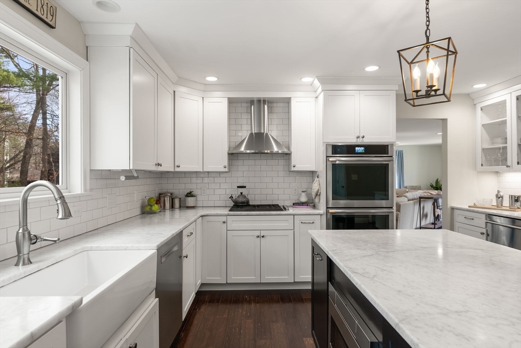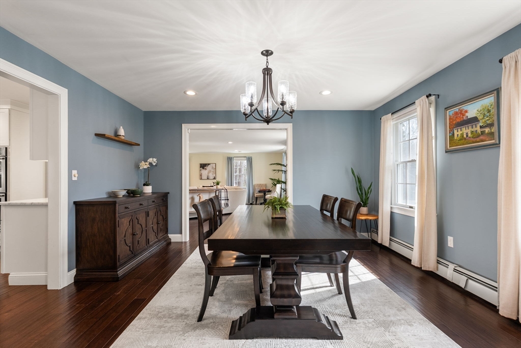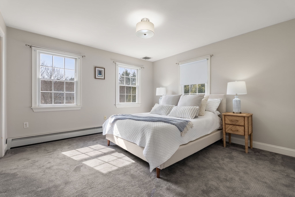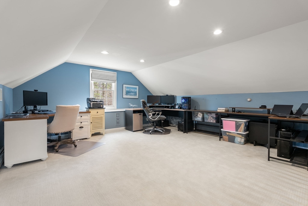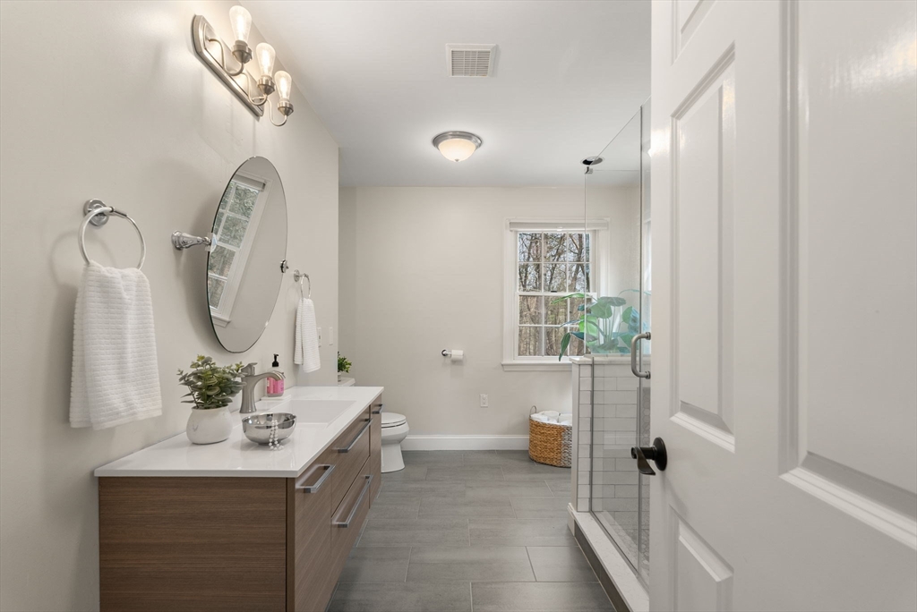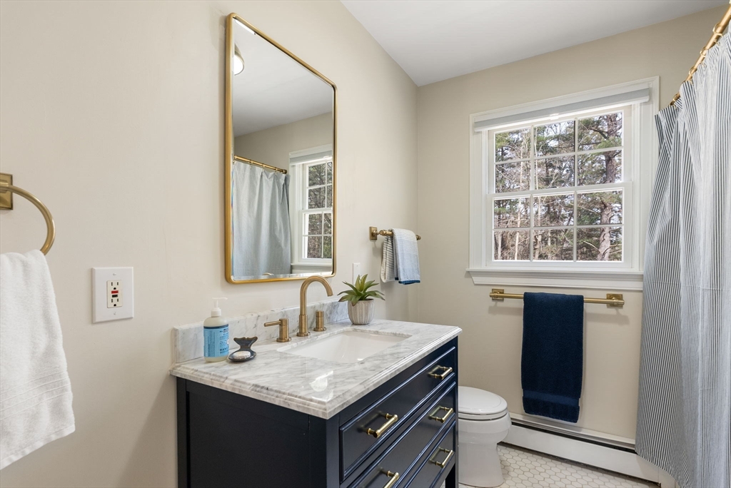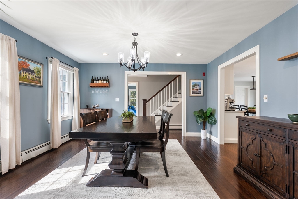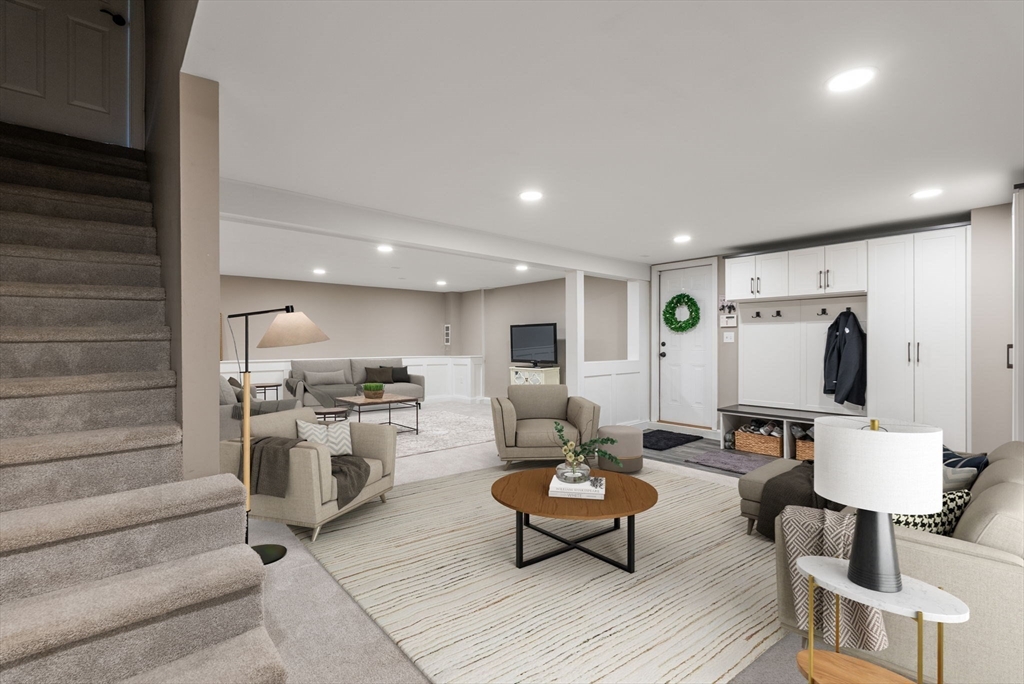 5 Captain Pierce is a beautifully updated Colonial with four finished levels of living on an acre of land, situated in a quiet cul-de-sac in desirable West Newbury north of Boston. The gourmet eat-in kitchen features marble countertops and gas cooking with attached deck for outdoor dining. An inviting living room centers around a stacked stone fireplace, creating a warm ambiance that flows into formal dining room and cozy den. Upstairs the primary suite features an expansive walk-in closet with custom built-ins storage and luxurious spa ensuite bath. Two generously-sized bedrooms, a second full bath, and laundry room provide comfort and practicality. A third-floor retreat offers versatility as an office, guest room, or fourth bedroom. The finished lower level is a large family room with mudroom for direct access to the two-car attached garage. Outside is a large, level yard surrounded by mature landscaping. Close proximity to hiking, boating, and major highways for commuters.